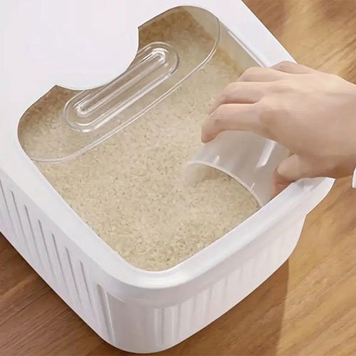 Massive 10kg Capacity: Whether you are stocking up on white rice, flour, or bulk snacks, this super-capacity box handles the “big bags” with ease. It’s also the perfect size for keeping a large supply of dog or cat kibble fresh and crunchy.